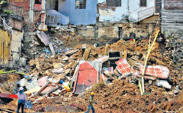 El desplome de un muro alarmó a vecinos de un edificio en construcción Alcaldía pidió un plan de contingencia. /PÁGINA 2