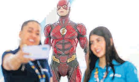como Batman, la Mujer Maravilla y Flash Además de tomarse fotos y videos, los asis tentes al centro comer cial también pueden dis frutar de espectáculos en vivo alrededor de es tas figuras