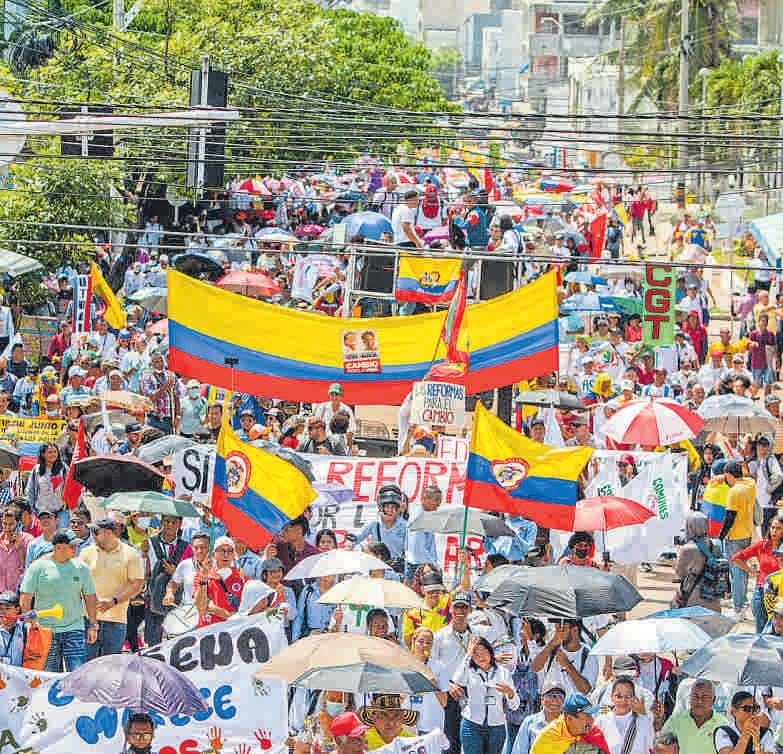 Durante dos horas y media, diferentes comunidades de Barranquilla marcharon en la mañana de ayer para manifestar su respaldo a las reformas del gobierno del presidente Gustavo Petro