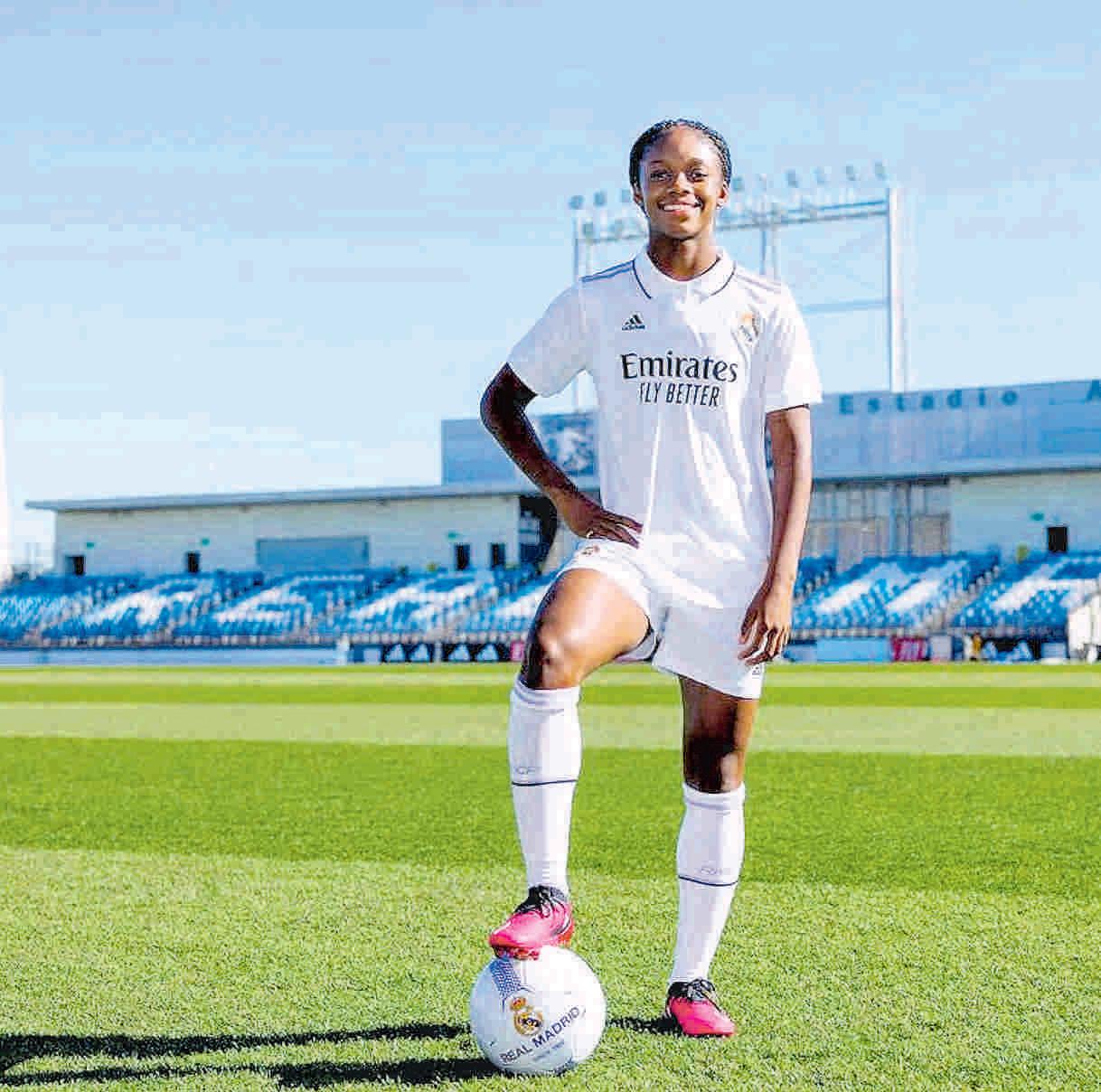 De frenillos, cabello tejido y una velocidad a la altura de su vertiginosa carrera, la jugadora de 18 años firmó con los ‘merengues’, procedente del Deportivo Cali