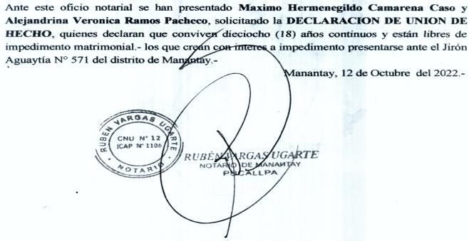 Se hace saber que don Beker Tamani Maricahua DNI Nr 46629731,de34años,natural deSanJuanBautista,nacionalidad peruano domiciliado en calle 8 de diciembre Mz.H-Lt.3 y Doña JulyMilagrosMontesVasquez,DNI48049113,de30años,natural deFernandoLores,denacionalidadperuana,domiciliadaencalle 08 de Diciembre Mz.H-Lt.02-Belén , pretenden contraer matrimoniocivilenestamunicipalidad.Quienesconozcancausaldeimpedimento,podrándenunciardentrodeltérmino deochodíasyenformaqueestableceelartículoNr 253delCódigoCivil. Belén 24 de 10 del 2020