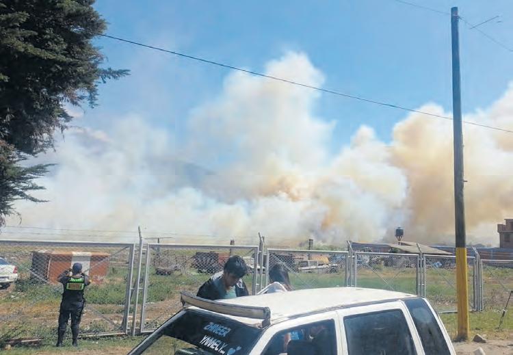 Con apoyo de los bomberos y personal del Ejército Perua no se realizaron los trabajos por más de dos horas, para controlar el fuego.