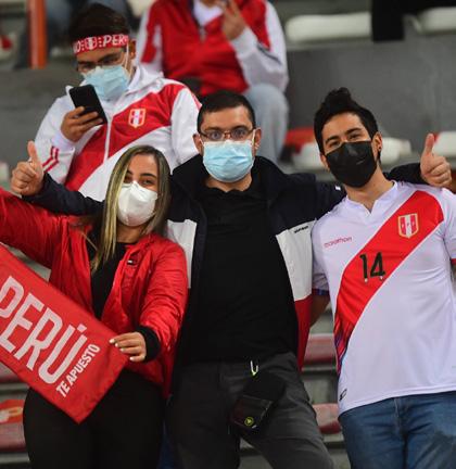 La hinchada pe ruana cumplió con alentar a la “Sele”, la 12 puso el empu je para ganar a los “mapochos”.