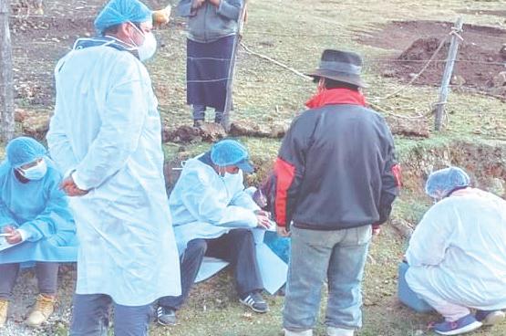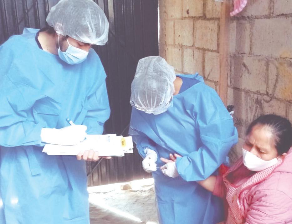 El equipo de interven ción integral realizó el cerco epidemiológico en el pueblo joven de Las Moras, y en compañía de los profesio nales de la salud, realizaron evaluaciones médicas a los casos positivos, así como a sus contactos y familiares.