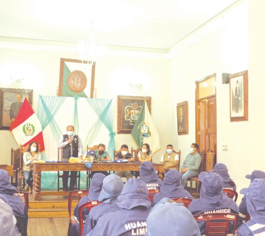 Alrededor de 180 tra bajadores del Servicio de Limpieza Pública de la Municipalidad Provincial de Huánuco recibieron equipos completos de protección personal y nuevos uniformes por parte de José Luis Villa vicencio Guardia, alcalde provincial de Huánuco.