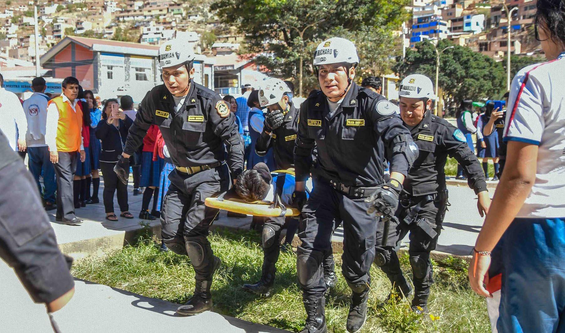 apoyo del cuerpo de bomberos de Huánuco, PNP y vecinos de la zona, los cuales hicieron de heridos y damnificados. De esta forma se lograron determinar los puntos de reunión, zonas seguras internas y externas, rutas de evacuación y puntos de