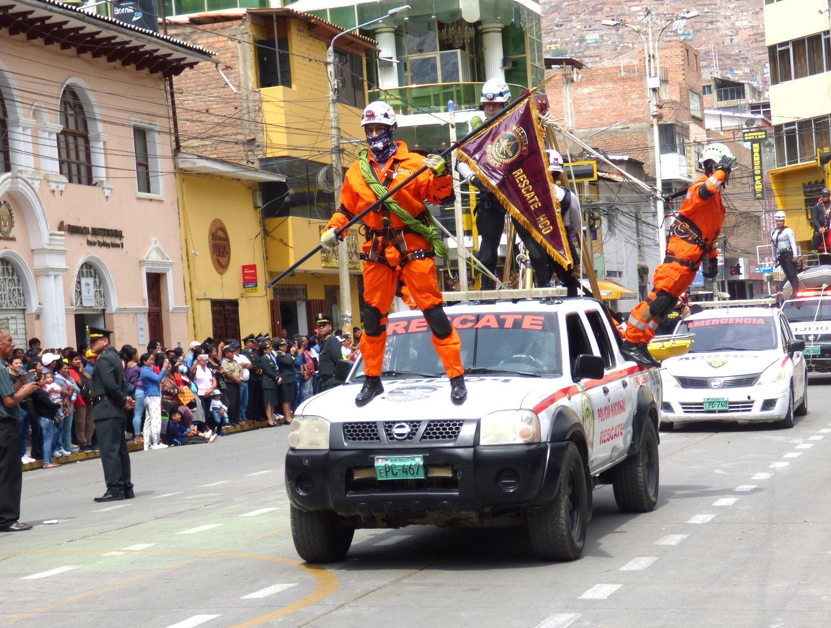 Los integrantes de la Policía Nacional, ayer, seis de diciembre del 2022, celebraron el 34 aniversario de la crea ción institucional de la PNP con un espectacular desfile cívico patriótico desarrollado en la Plaza de Armas de Huánuco.