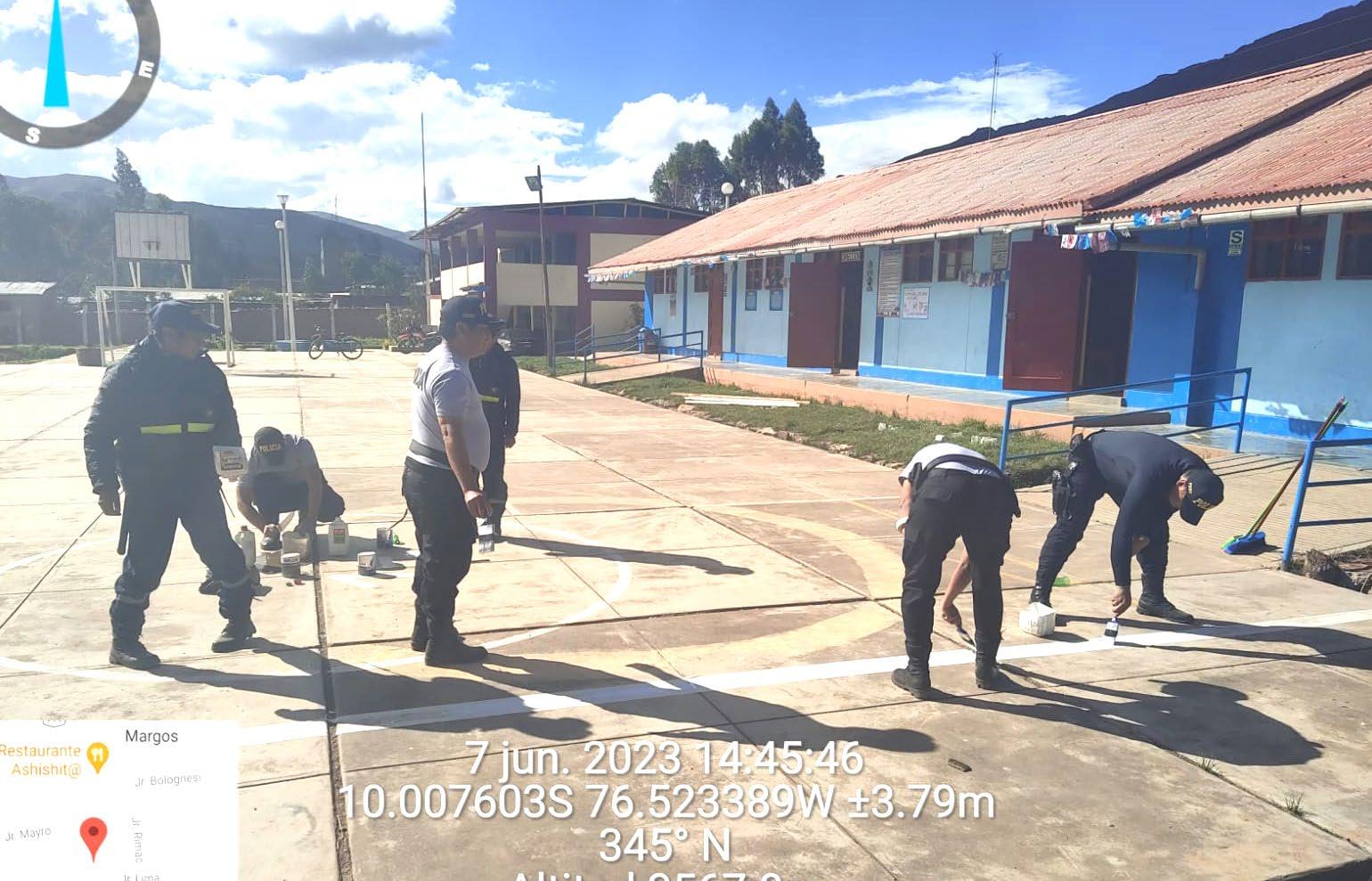 En una acción conjunta entre la Policía Nacional del Perú y el Serenazgo de la Municipalidad de Margos, se realizó la recuperación de una loza deportiva ubicada en la Institu-