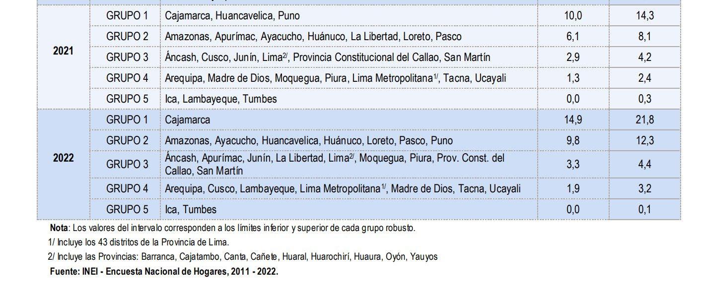 El informe denominado “Perú: Evolución de la Pobreza Monetaria 20112022”, fue elaborado en base a los resultados de la Encuesta Nacional de Hogares (Enaho).