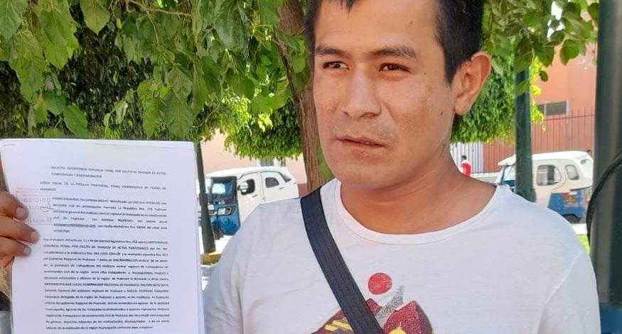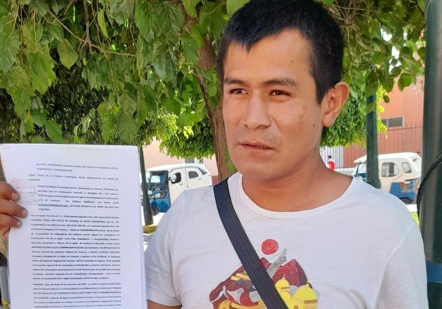El secretario general del Sindicato Central Regional de Trabajadores de Construcción Civil de la región de Huánuco, Pedro Vilcapoma Bravo, se acercó a la sede del Consejo Regional para insistir en el cumplimiento de la ordenanza n° 043.