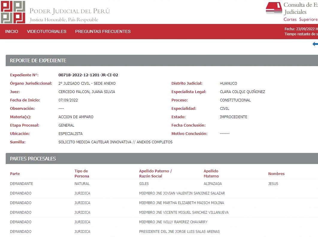 nido un pronunciamiento, esperamos que para el día lunes o martes, el juzgado esté emitiendo el pronun ciamiento final, ya que es el que tiene mayor cuidado y atención de nuestra parte. El (juzgado) de Huánuco está presentado en otras palabras para entretener a nuestros opositores”, ex plicó.