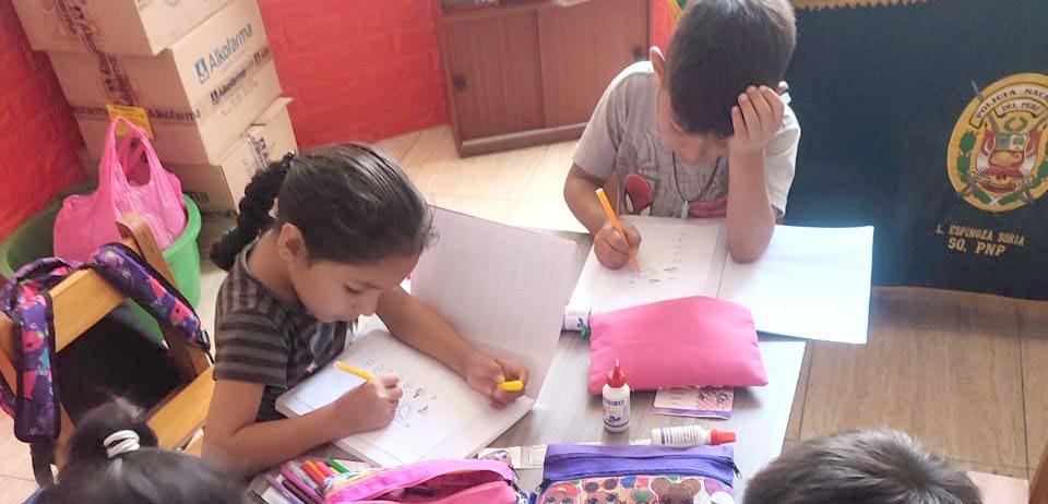 Los agentes refuerzan los conocimientos de los menores de 4, 5, 6, 7 años de edad en las áreas de comunicación y otras tareas académicas. Asimismo, les otorgaron refrigerios, como incentivos, y los pequeños salieron a gusto con la iniciativa de la
