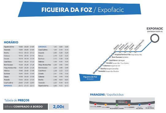 O Expofacic Bus terá 5 linhas que ligam Coimbra, Figueira da Foz / Praia da Tocha, Praia da Barra / Aveiro, Praia de Mira e Oliveira do Bairro a Cantanhede, durante os 11 dias do evento.