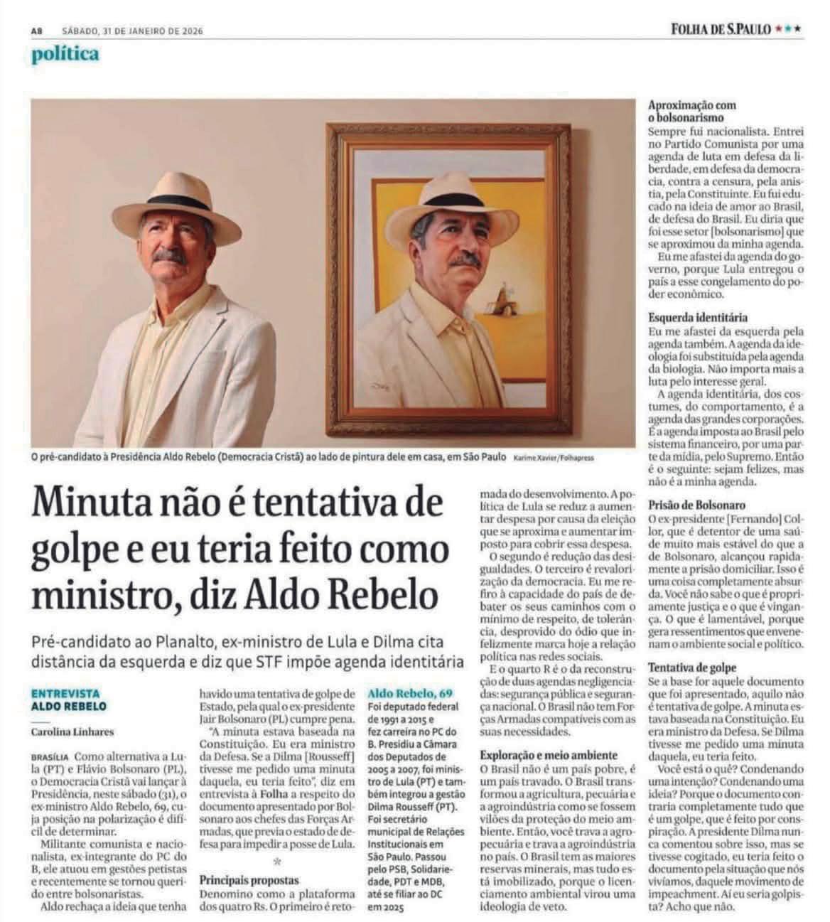 COM A CANDIDATURA DO EX-MINISTRO E EX-PRESIDENTE DA CÂMARA DOS DEPUTADOS, ALDO REBELO, À PRESIDÊNCIA DA REPÚBLICA (PDC – PARTIDO da DEMOCRACIA CRISTÃ), AS ELEIÇÕES DE 2026 TERÃO A DISCUSSÃO DE TEMAS RELEVANTES AO BRASIL, COMO TEM SIDO A PAUTA DE ALDO REBELO. ISSO IRÁ SUBIR O NÍVEL DA DISPUTA ELEITORAL ATÉ AGORA APRISIONADA ENTRE A FALSA POLARIZAÇÃO ENTRE A ESQUERDA E A DIREITA.