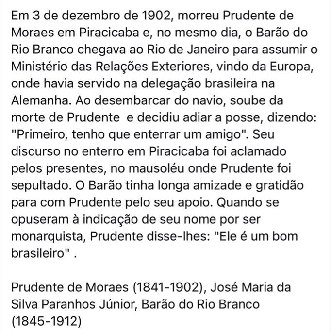José Maria da Silva Paranhos Júnior, o Barão do Rio Branco, foi um professor, jornalista, diplomata, político e historiador brasileiro. Nasceu no Rio de Janeiro, em 20 de abril de 1845, e morreu na mesma cidade, no dia 10 de fevereiro de 1912. Foi importante por suas atuações na definição das fronteiras do Brasil em diferentes ocasiões, fazendo negociações e assinando tratados com diversos países.