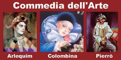 Os 3 são personagens da Comédia Italiana, uma companhia de atores que se instalou na França entre os séculos XVI e XVIII para difundir a Commedia dell’Arte, forma teatral original com tipos regionais e textos improvisados. Colombina era uma criada de quarto, esperta, sedutora e volúvel, amante do Arlequim, às vezes vestia-se como arlequineta, em trajes de