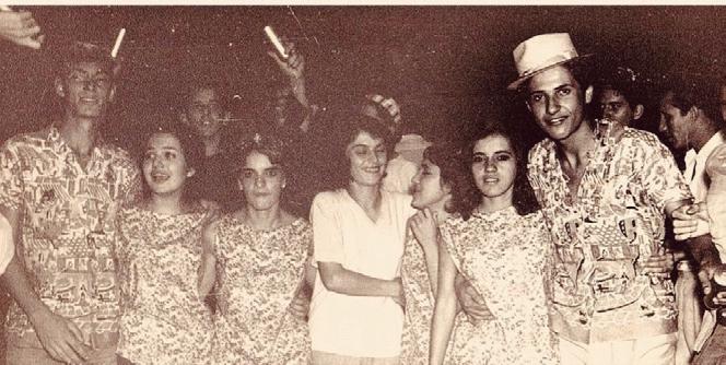 Durante o baile você via que os rolinhos coloridos de serpentina abriam e cruzavam o teto do clube.