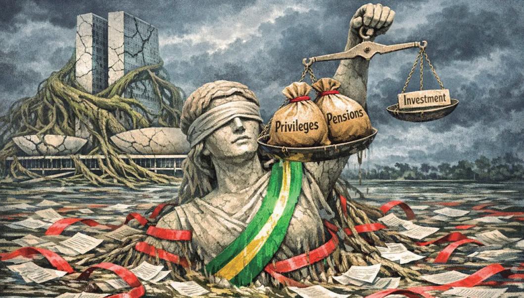 O artigo afirma que o paradoxo do país é combinar indicadores que, à primeira vista, seriam considerados positivos, como crescimento econômico, banco central independente e orçamento primário “quase equilibrado”, com uma dinâmica de endividamento considerada explosiva.