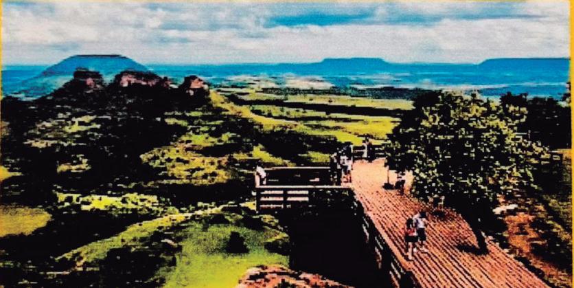 No topo da Cuesta e de sua Escarpa pode-se ver as Três Pedras que são os pés do Gigante Deitado, essa é a bela visão que se tem do deck da Pedra do Índio e, na rampa da Base da Nuvem, apreciar os voos de parapente. Fantástico! AVANTE!!!