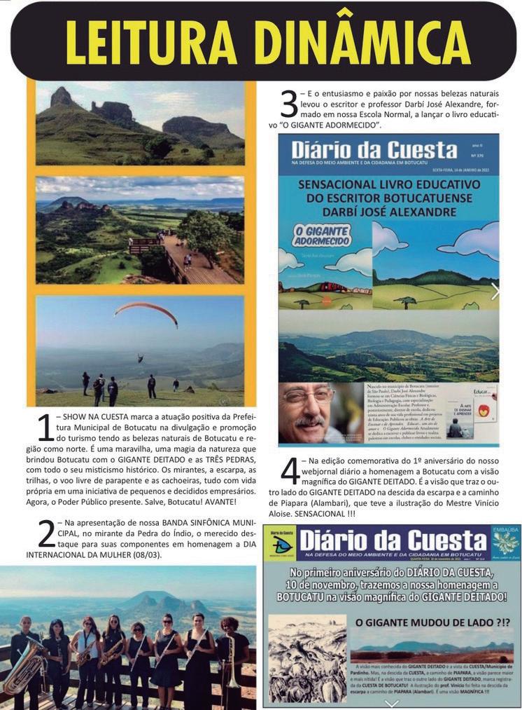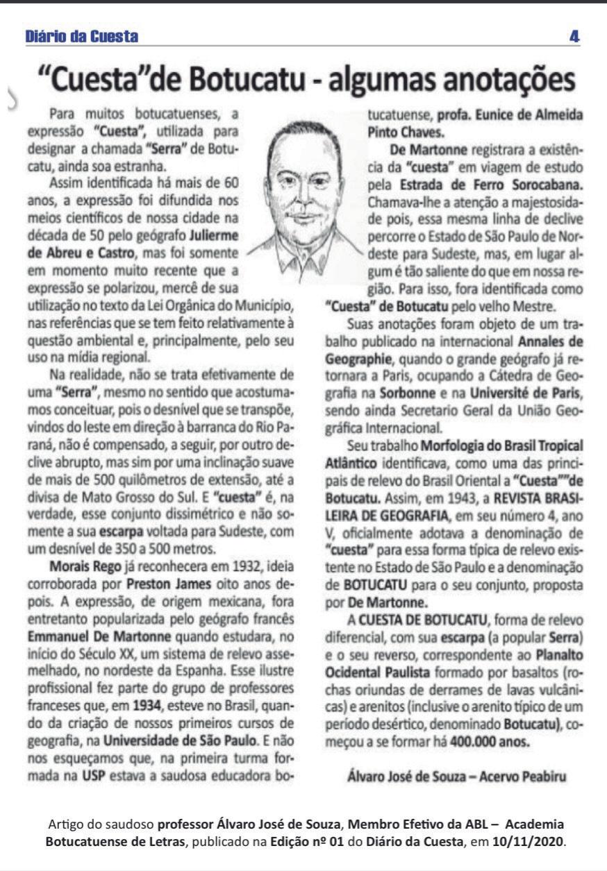 Além disso, tramita na Assembleia Legislativa do Estado de São Paulo projeto de lei instituindo o “Dia da Cuesta”, a ser comemorado dia 18 de fevereiro, iniciativa que reforça a importância cultural, ambiental e econô-