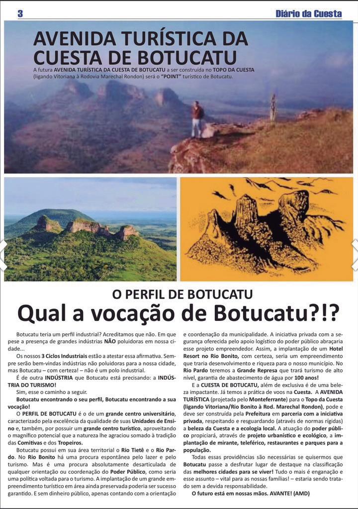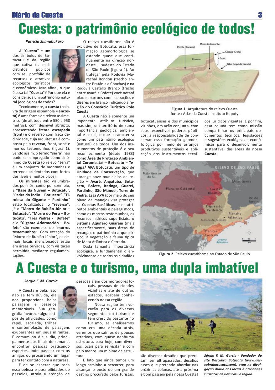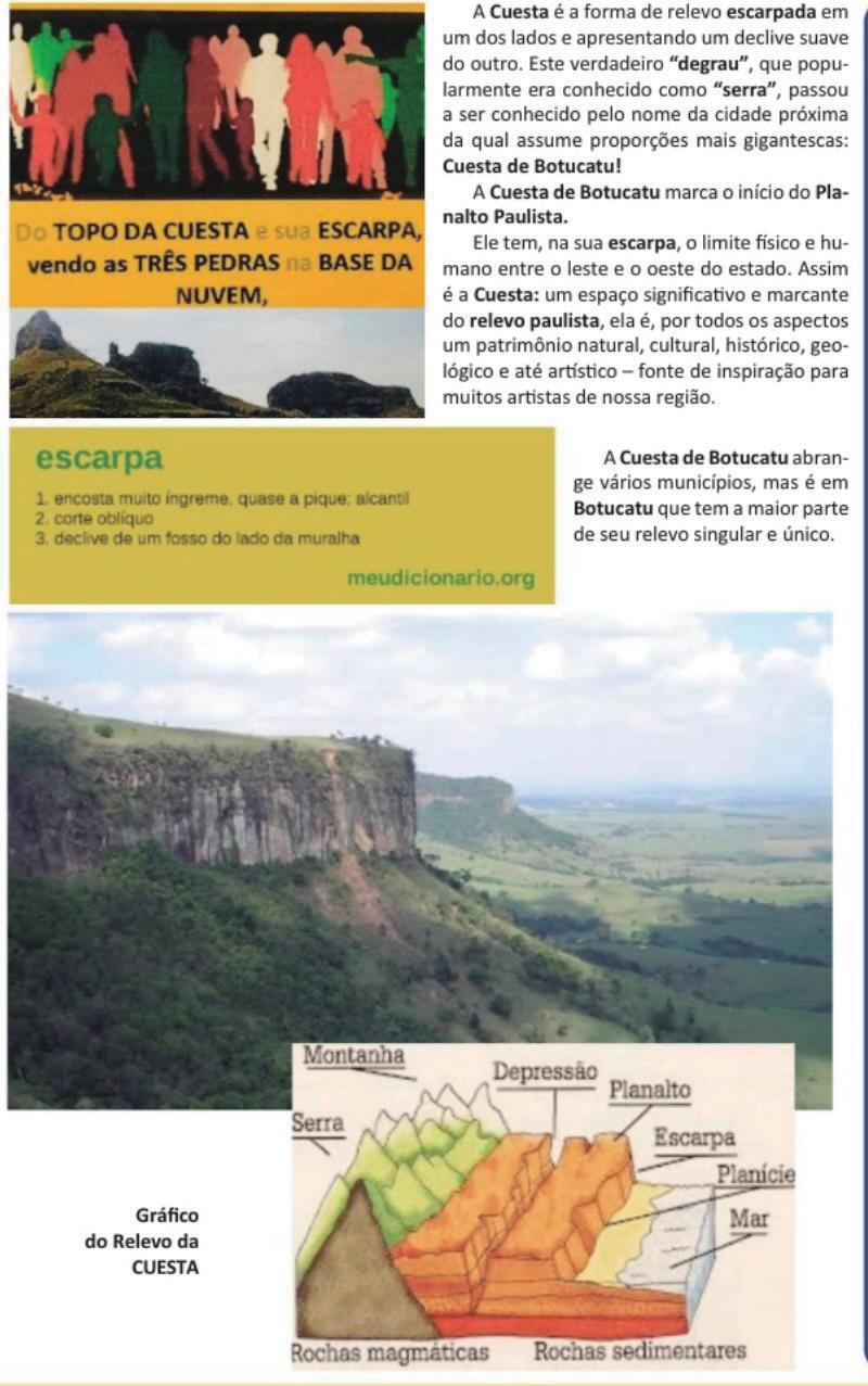 Ele tem, na sua escarpa, o limite físico e humano entre o leste e o oeste do estado. Assim é a Cuesta: um espaço significativo e marcante do relevo paulista, ela é, por todos os aspectos um patrimônio natural, cultural, histórico, geológico e até artístico - fonte de inspiração para muitos artistas de nossa região.