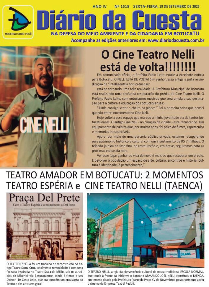 Cine Nelli, renovado, está de volta!!! Botucatu festeja o retorno do Cine Teatro Nelli, após a sua ampla restauração pelo Poder Público Municipal Botucatu – A CIDADE DO CINEMA! – terá sua valiosa memória como centro nacional de distribuição de filmes, preservada. O Cine Nelli será um importante equipamento público a espalhar e consolidar uma programação cultural para as sessões gratuítas dedicadas aos alunos do ensino público e particular de Botucatu. AVANTE!