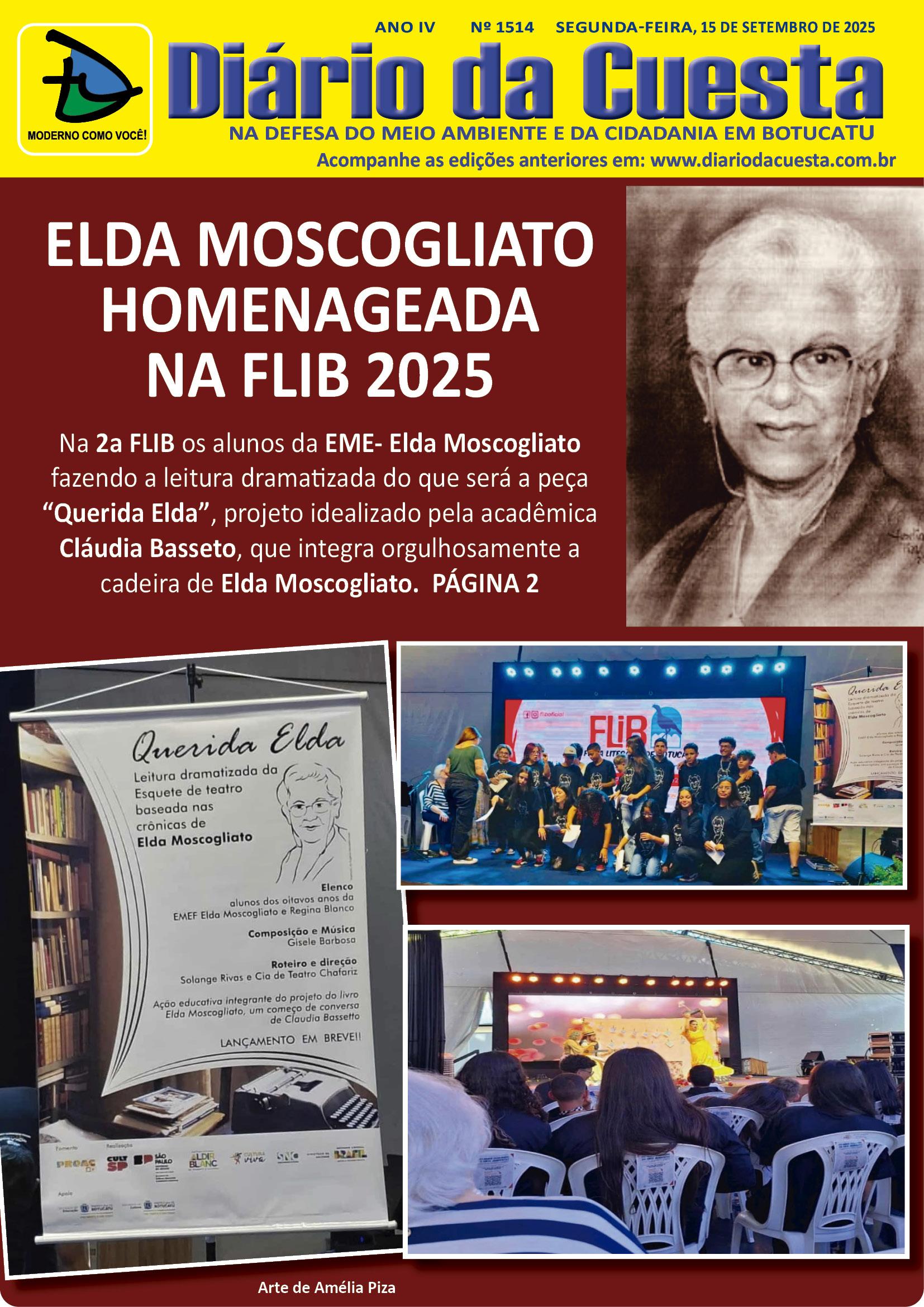 Desde maio, alunos dos oitavos anos da EMEF Elda Moscogliato, na zona rural, participam de oficinas e ensaios que estimularam leitura e escrita e culminaram na peça “Querida Elda”, dirigida por Solange Rivas, que também assina a composição homônima escrita para a peça ao lado de Gisele Barbosa, com encenação da Cia de Teatro Chafariz. Pelo Projeto Elda, alunos e atores já se apresentaram em eventos como a FLIB (Feira Literária de Botucatu), promovida pela Faculdade de Medicina de Botucatu (FMB), no campus da Unesp, o BotuSIMA – Simpósio de Metodologias Ativas do Ensino Fundamental, realizado pela Secretaria de Educação de Botucatu, além de apresentações na Biblioteca Municipal Emílio Peduti e no Teatro Municipal Camillo Fernandez Dinucci.