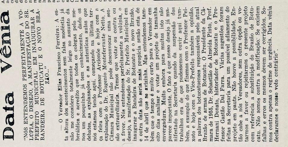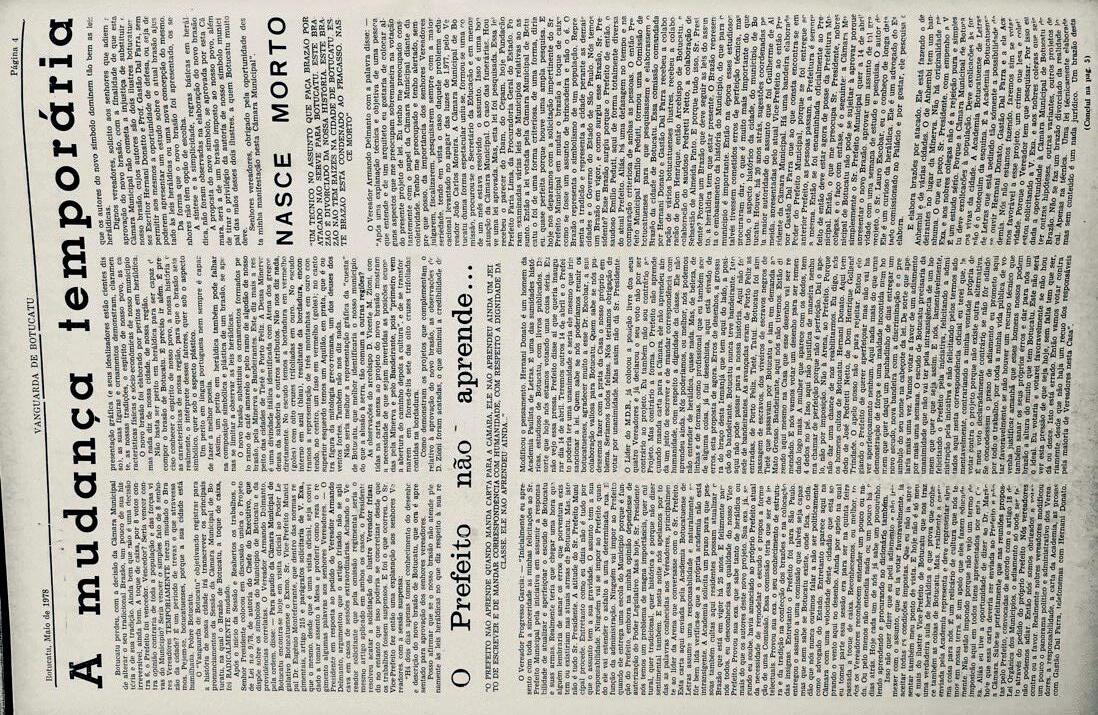 –É preciso o registro da histórica sessão da Câmara Municipal de Botucatu na qual ocorreu a mudança do Brasão de Botucatu , com o discurso dos Vereadores Progresso Garcia e Armando Moraes Delmanto ( Jornal Vanguarda de Botucatu /maio de 1978):