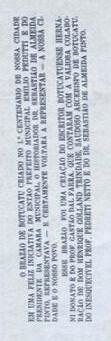Já demos a nossa sugestão conciliatória através da revista Peabiru e vamos repeti-la: que se mantenha o atual Brasão e se eleve a nível de BRASÃO HISTÓRICO DO CENTENÁRIO o nosso Brasão elaborado por Hernâni Donato e Gastão Dal Farra.