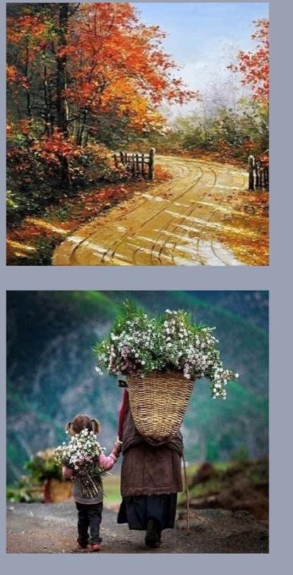 Ela andava por uma estrada carregando um enorme fardo.