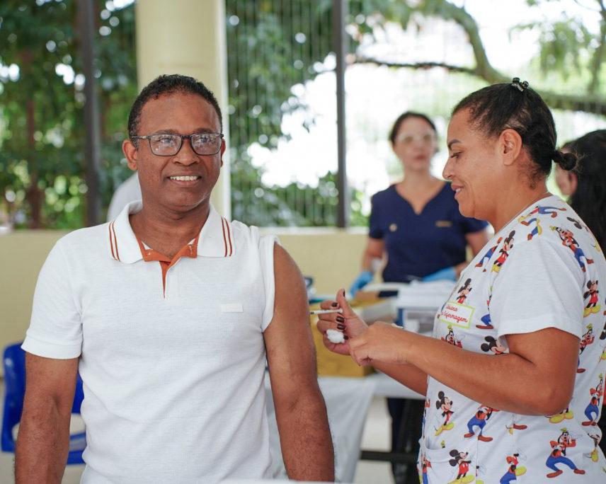 Morador de Botucatu recebe a vacina da dengue neste domingo (18)