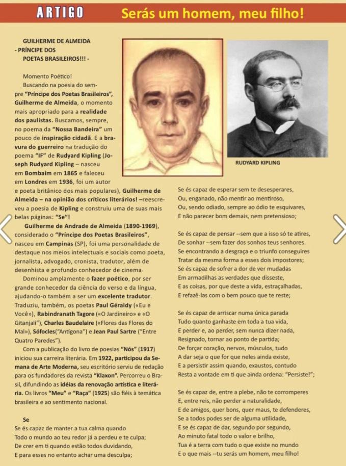 Guilherme de Almeida na opinião dos críticos literários! – reescreveu a poesia (IF) de Kipling e construiu uma de suas mais belas poesias: “SE” Página 3