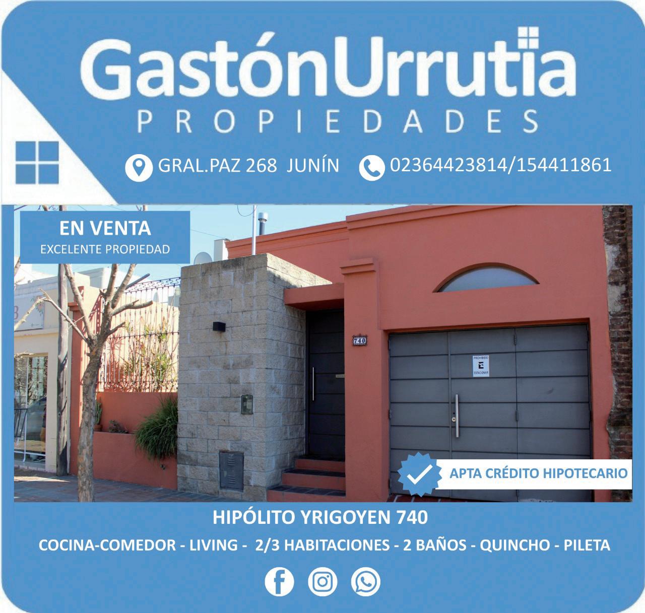 Casa de 3 dorm., baño, cocina comedor, living, jardín de invierno, cochera, patio y lavadero, s/ Av. Rivadavia.