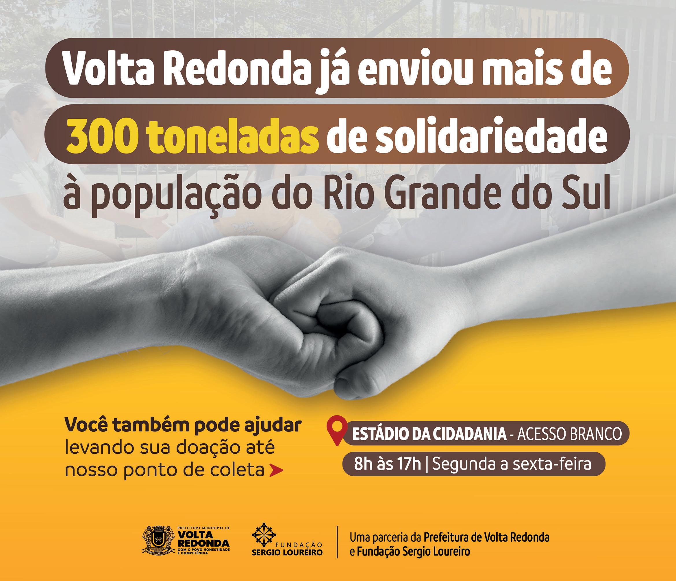 Um grupo de alunos do CIEP Toninho Marques, localizado no bairro Belmonte, “Amigaços” e integrantes da torcida do Esquadrão de Aço, arrecadaram mais de meia tonelada em donativos - entre água, roupas, alimentos e materiais de higiene pessoal, no fim de semana no Estádio Raulino de Oliveira Os donativos serão encaminhados para as vítimas das enchentes que atingem as cidades do Estado do Rio Grande do Sul há mais de duas semanas.