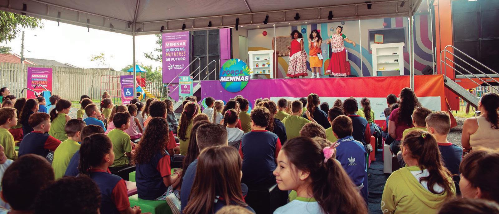 prevê a integração colaborativa e criativa dos conhecimentos em ciências, tecnologia, engenharia, artes & design e matemática. O visitante circula por instalações imersivas que passam pelos princípios do processo criativo, da inovação e da inventividade, com criação e curadoria de Déborah De Mari, fundadora da Força Meninas. A ideia é mostrar para as crianças a beleza do detalhe e, ao mesmo tempo, a complexidade do mundo em que vivemos. O desejo é que as garotas saiam da experiência compreendendo a importância de ingressarem em áreas estratégicas, como Ciências, Engenharia e Tecnologia, para transformar positivamente o presente e o futuro. Ao término do programa, será entregue a cada participante um livreto escrito por Déborah De Mari, que narra a vida de dez mulheres de destaque nas carreiras de STEM. Dentre elas estão a engenheira Carol Shaw (pioneira no desenvolvimento de jogos eletrônicos) e a bióloga e educadora Bertha Lutz. As apresentações terão tam-
