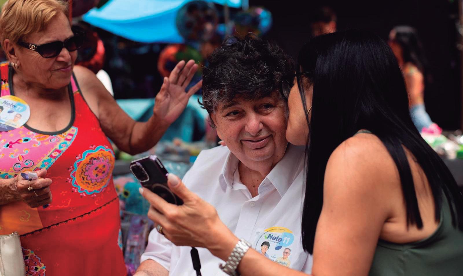 novamente em primeiro turno. Questionado sobre o feito, Neto responde com jeito tímido, já conhecido pela população.