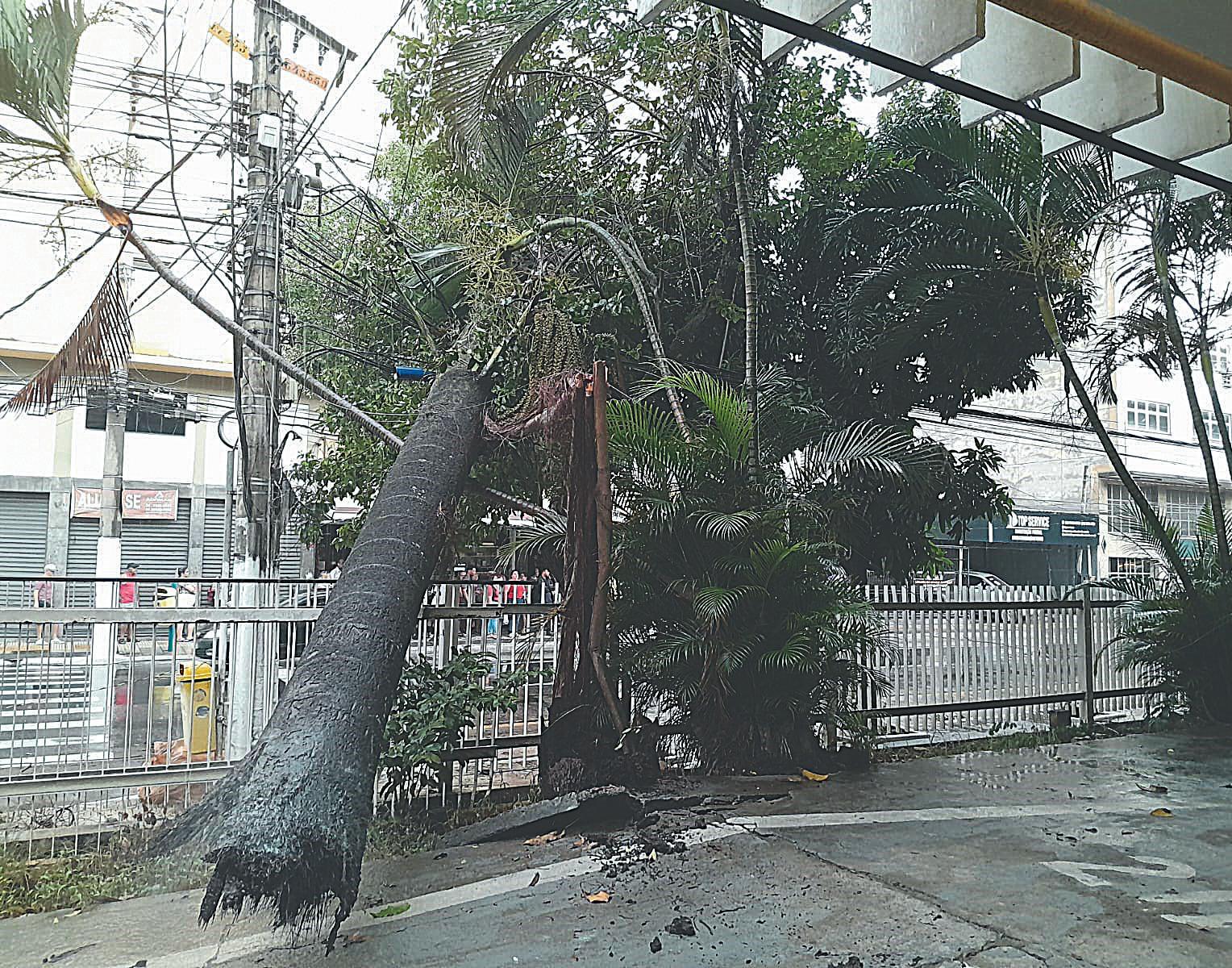 Ventos de 100 km/h causaram queda de energia e de árvores, além de espalharem poeira industrial pela cidade