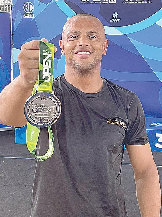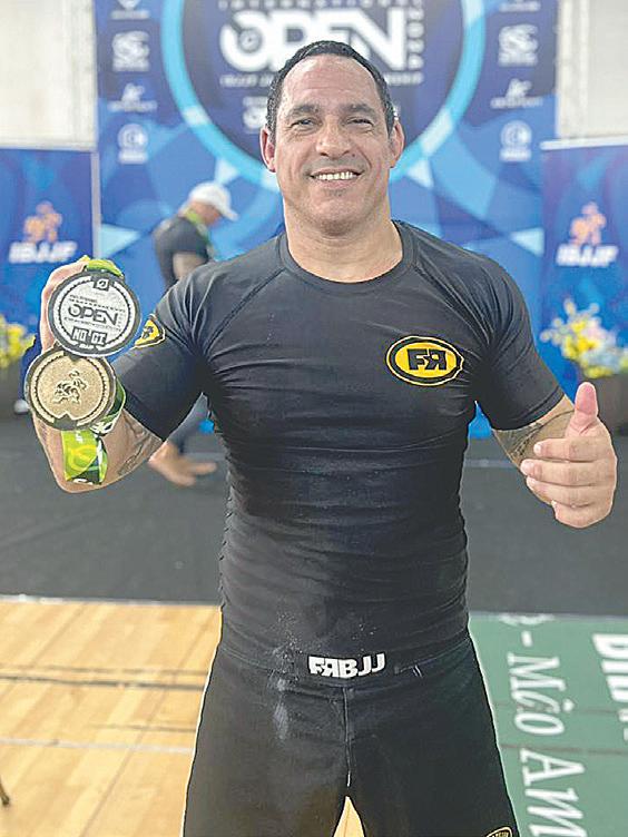 Felipe Cobra, faixa preta há 23 anos, com 33 anos de trajetória no Jiu-Jitsu, conquistou medalha de ouro na categoria ‘Master 4 Super Pesado’ e medalha de prata no’ Absoluto NOGI (sem kimono)’.