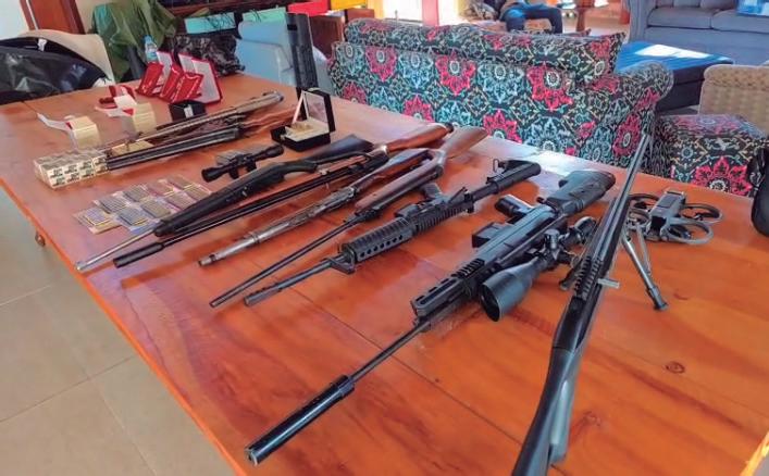 nhonete Dodge Ram, três quadriciclos, um carro de trilha, joias e armas de fogo. Também foram encontrados três pássaros exóticos, entre eles uma arara, mantidos em cativeiro.