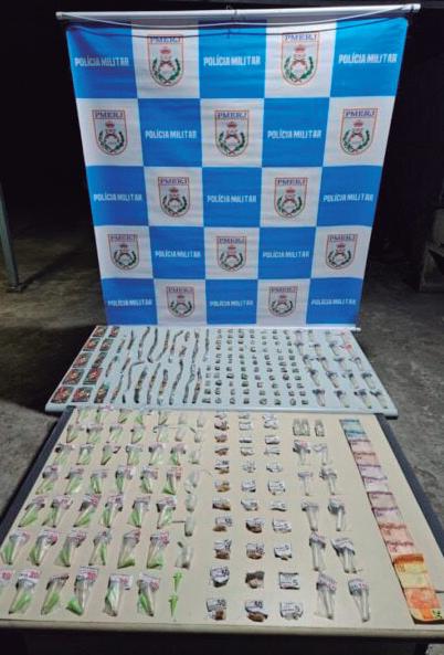 apreendidos 39 porções de maconha, 156 pinos de cocaína, 44 pedras de crack, 24 frascos de ‘loló’, quatro comprimidos de ecstasy, além de R$ 88 em dinheiro, um aparelho celular e uma bateria de rádio.