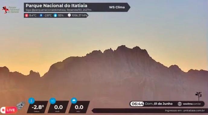 Itatiaia registrou neste domingo (1º) uma das temperaturas mais baixas do ano: -2,8°C, por volta das 6h45 da manhã. O frio intenso atrai visitantes e fotógrafos