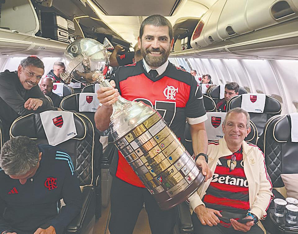 O piloto Fabrício Guimarães, de Barra Mansa, viveu um dia inesquecível ao trazer o Flamengo de volta ao Brasil depois da conquista da Libertadores em Lima. Além de conduzir a delegação, ele posou segurando a taça, registrando o momento que virou motivo de orgulho na região. A chegada no Rio teve recepção