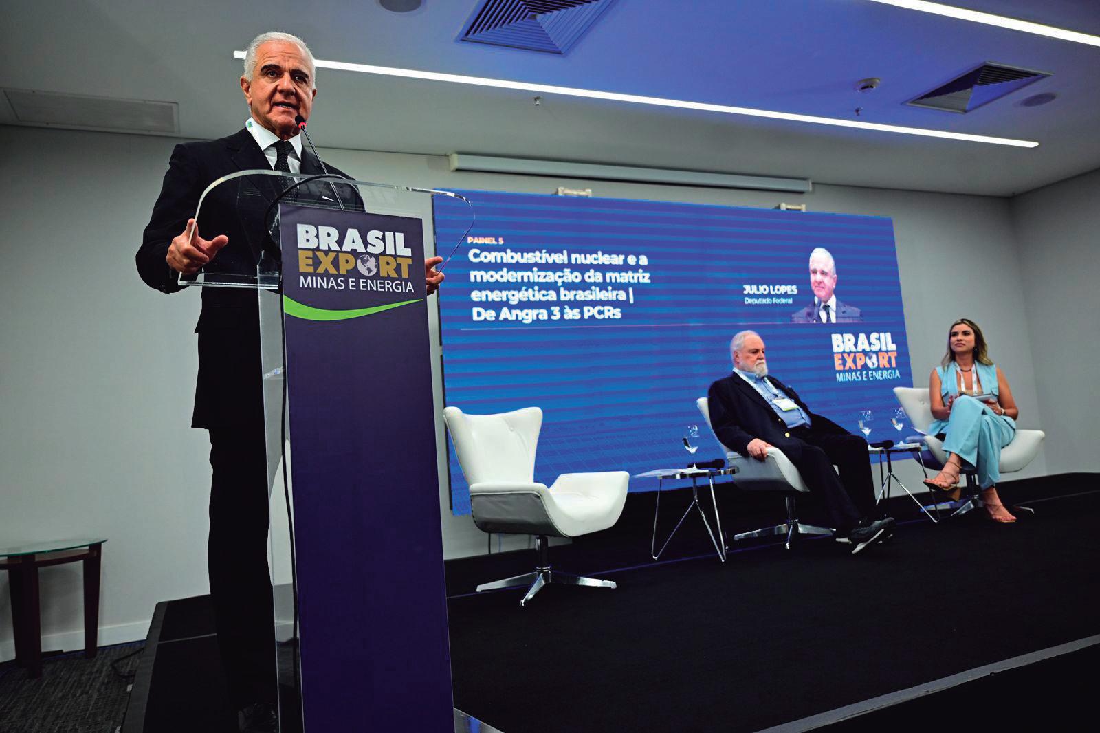 Durante o Fórum Brasil Export Minas e Energia, realizado em Brasília, o presidente da Frente Parlamentar de Energia Nuclear, deputado Julio Lopes (PP), defendeu a ampliação da participação da energia nuclear na matriz elétrica brasileira e cobrou mudanças no modelo de licenciamento ambiental, além da retomada das obras de Angra 3. As declarações ocorreram em meio ao debate sobre segurança energética e à crise financeira vivida pela Eletronuclear.