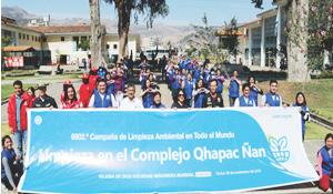 En base a las necesidades y urgencias de los distintos sectores de la ciudad, en los últimos días se ha realizado distintas jornadas masivas de limpieza, desare nado y descolmatación en la ciudad, en esta oportunidad en el sector Pueblo Libre, en el complejo Qhapac Ñan. Trabajadores de limpieza pública y or nato ambiental, provistos de sus equipos de protección personal, escobas, palas, rastrillos y más implementos de lim pieza, junto a voluntarios de la iglesia de Dios Sociedad Misionera Mundial y la Policía de Medio Ambiente, esta mañana, efectuaron una nueva cam