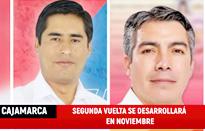 los cómputos oficiales, lo cual, según fuentes del JNE, ocurrirá en noviembre. Las cifras del escrutinio de la ONPE, con un porcentaje de actas procesa das casi al 100%, ponen como conten dores en Amazonas a Gilmer Horna (SAR), con 24.3%, y Grimaldo Vásquez (MVRA), con 22.2%; en Cajamarca, a Roger Guevara (SP), con 19.8%, y Víctor Villar (FRC), con 18.8%; mientras que en Cusco se enfrentan Werner Salcedo (SP), con 28.7%, y Edy Cuéllar (MRIP) con 19.1%.