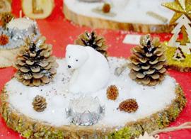 Utilizando tu ingenio y creatividad puedes hacer un hermoso adorno navideño con un retaso de madera, silicona caliente, tecnopor para hacer nieve artificial, algunas piñas y adornos alusivos a la navidad