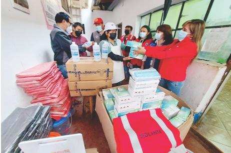 Como parte del programa MuniSalud, el gobierno pro vincial local prosigue con las acciones de prevención sani taria y para ello, hizo entrega de implementos de biosegu ridad en diferentes mercados de la ciudad, recomendando que aún no hemos salido de la pandemia de la covid19 y la prevención es una de las principales herramientas para evitar su proliferación. Integrantes del comité de au tocontrol sanitario municipal recorrieron los mercados Cen tral, Modelo, Chontapaccha, La Esperanza, Tulpuna y San Martín para hacer entrega de alcohol, tanques de agua con caños, mascarillas, bolsas plásticas; entre otros, para dicho fin; asimismo, gene rar confianza en los consu midores. José La Torre, administrador del mercado Central manifes tó que desde que inició la emergencia sanitaria siem pre han articulado con los comerciantes para cumplir con las medidas de biosegu ridad establecidas y junto a la municipalidad han plani ficado esta labor para que no haya desabastecimiento de productos y la población pue da satisfacer sus necesidades, especialmente, cuando se dis puso el confinamiento social Estaobligatorio.laboremprendida por la gerencia de Desarrollo Económico se realiza de manera periódica, en todos los centros de abasto de artí culos de primera necesidad, además del acompañamien to y monitoreo a los comer ciantes, informó Jesús Cachi, conductora del puesto 35 del Mercado Central manifiesta: “Todos los días cuidamos los protocolos de seguridad para los clientes y para nosotros, siempre se nos ha brindado los implementos, gracias a la Municipalidad por el apoyo continuo que nos han dado”