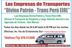 ABOGADOS TRANSPORTES PALACES S.ALes ofrece sus servicios en: Pasajes, Giros, Encomiendas y Valores. TerminalReyna Farge 130Celular 925828414 Salidas Cajamarca:MañanasdiariasLima5:30