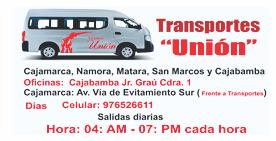 PM Cajamarca Trujillo 10:00 PM Cajamarca - San Pablo - San Miguel Servicio permanente todo el día CajamarcaEMTRALLAC-Catilluc-Tongod - Santa Cruz 4:00a.m - 6:00a.m - 2:00p.m - 3:30 p.m Servicio a CUTERVO: NUEVAS UNIDADES OFICINAS: Cajamarca Jr. Angamos N°1121 (frente al grifo continental) RPM 944685085 RPC 948633055 San Miguel Av. 28 de julio (frente al centro de salud) CEL.944662378 SANTA CRUZ Jr. Juan Ugaz N°624 - Cutervo: Jr. Angamos N° 1135 Cel. 968830361 ConfeccionesCarranza Ahora les atiende en su nuevo local, Calle los pensamientos 270 Barrio Chontapaccha Vilmánida Cabanillas Terán Asesoria y Consultoria. Jr. Tarapaca N° 543 RPC 983095833 y Cel 958111060 - Cajamarca SpaCajamarcaAlejandro Los mejores peinados y tintes para navidad y todo el año. Jr. Horacio Urteaga 272 Separe su cita al 076-312422Telef.: Gestores de Convenios Ripley - Cajamarca REQUISITOS: Estudios Universitarios o Tecnicos, Truncos, Completos o en Curso Experiencia mínima de 06 meses en venta y trabajo en campo. Deseable tener conocimiento de productos bancarios, préstamos por Horarios:convenio.TIEMPO COMPLETO(Lunes a Sabados) COMPETENCIAS: Vocación al Servicio Capacidad de Persuasión Trabajo bajo presión Ordenado, preciso y planificado BENEFICIOS: Capacitación constante. Bonos por cumplimiento Bono ExcelentesMovilidadcomisiones POSTULA RequerimientosYA!!! Educación mínima: Educación Secundaria Menos de 1 año de experiencia Edad: A partir de 18 años Disponibilidad de viajar: No Disponibilidad de cambio de residencia: No Postule a través de Computrabajo. com