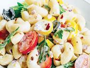 • Coloca en un tazón la los fideos, los tomates, aceitunas, choclo desgranado perejil y papas en cuadritos, Sirve junto al pavo y disfruta